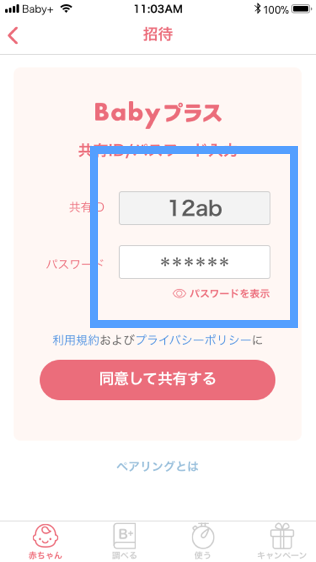 - STEP2で発行した共有IDとパスワードを入力